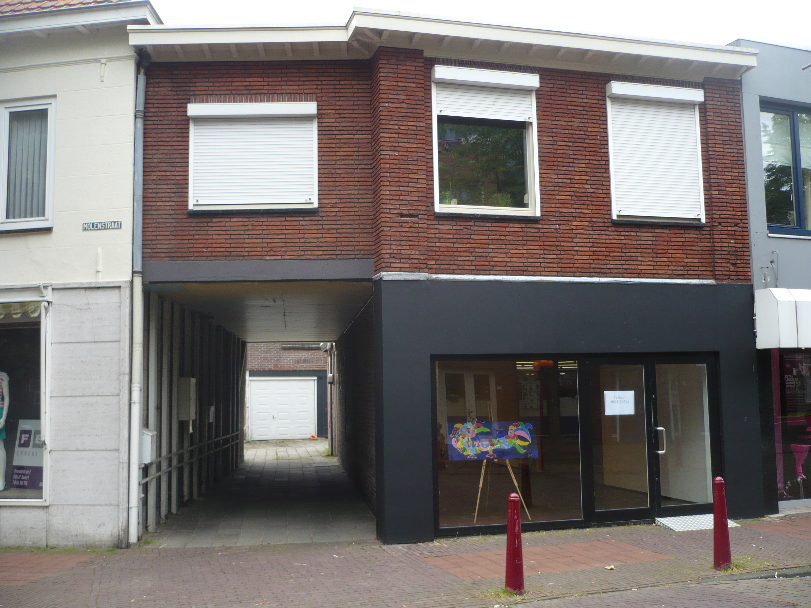 Wij zijn het heersend erf. In de akte staat dat de buren recht van overpad hebben. Tot nu toe is 1 woning links en 1 woning rechts. Dat gaan nu dan 4 woningen links worden en 2 winkelpanden. Met de bijbehorende parkeerplaatsen anders mogen ze geen appartementen meer bouwen.
