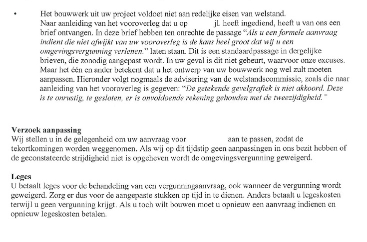 Iets in de trant van "welstand niet akkoord, u dient uw plan aan te passen en opnieuw voor te leggen aan de welstandcommissie"?