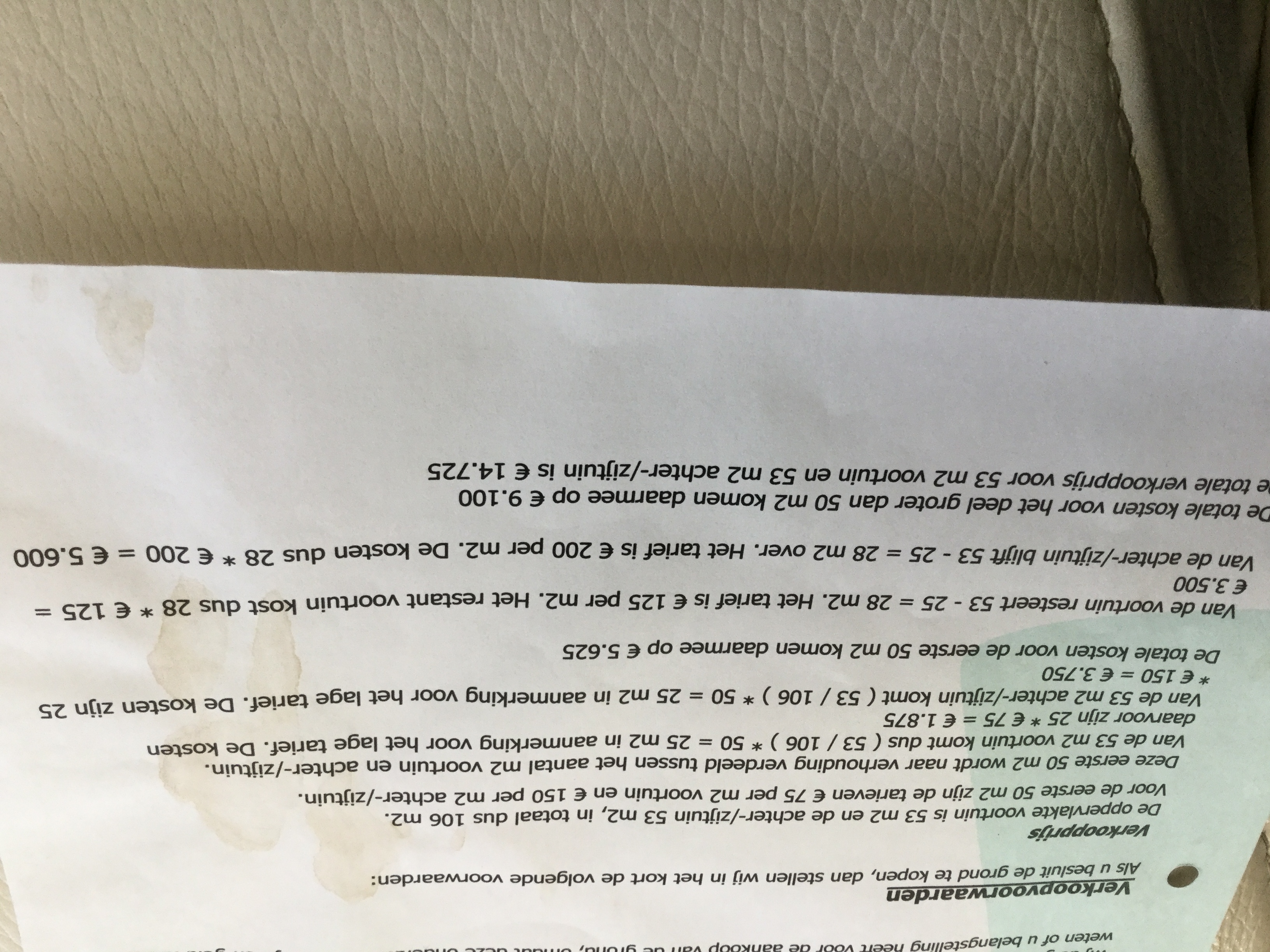 Dank voor je antwoord, ik de tekening van het kadaster staat voor de voortuin 53 m2 en de zij/achtertuin 44,5. Daarom snap ik de berekening denk ik niet.