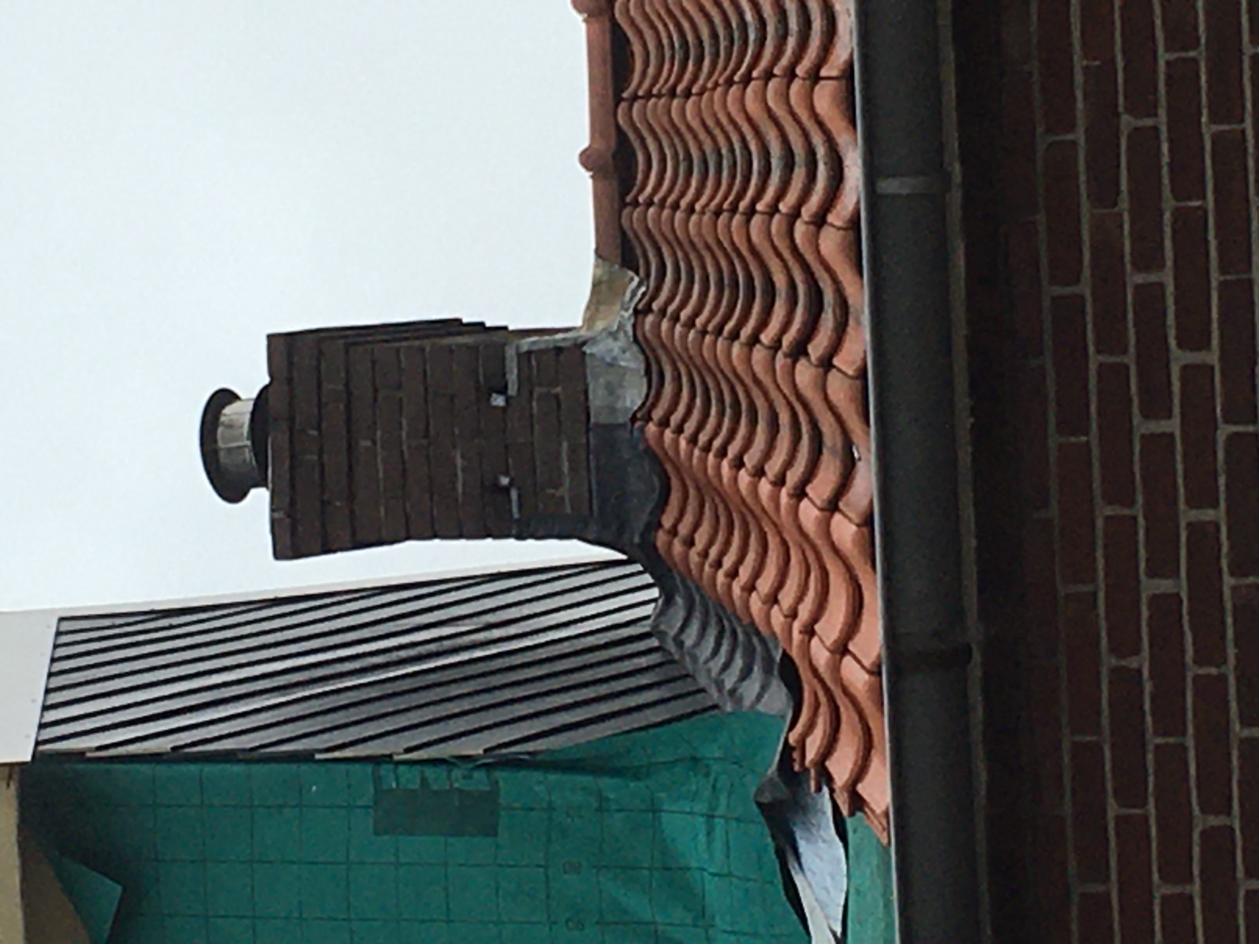 Nu hebben ze een dakkapel gebouwd , ze zeiden tegen ons dat ze twee dakpan rijen van de schoorsteen afblijven.