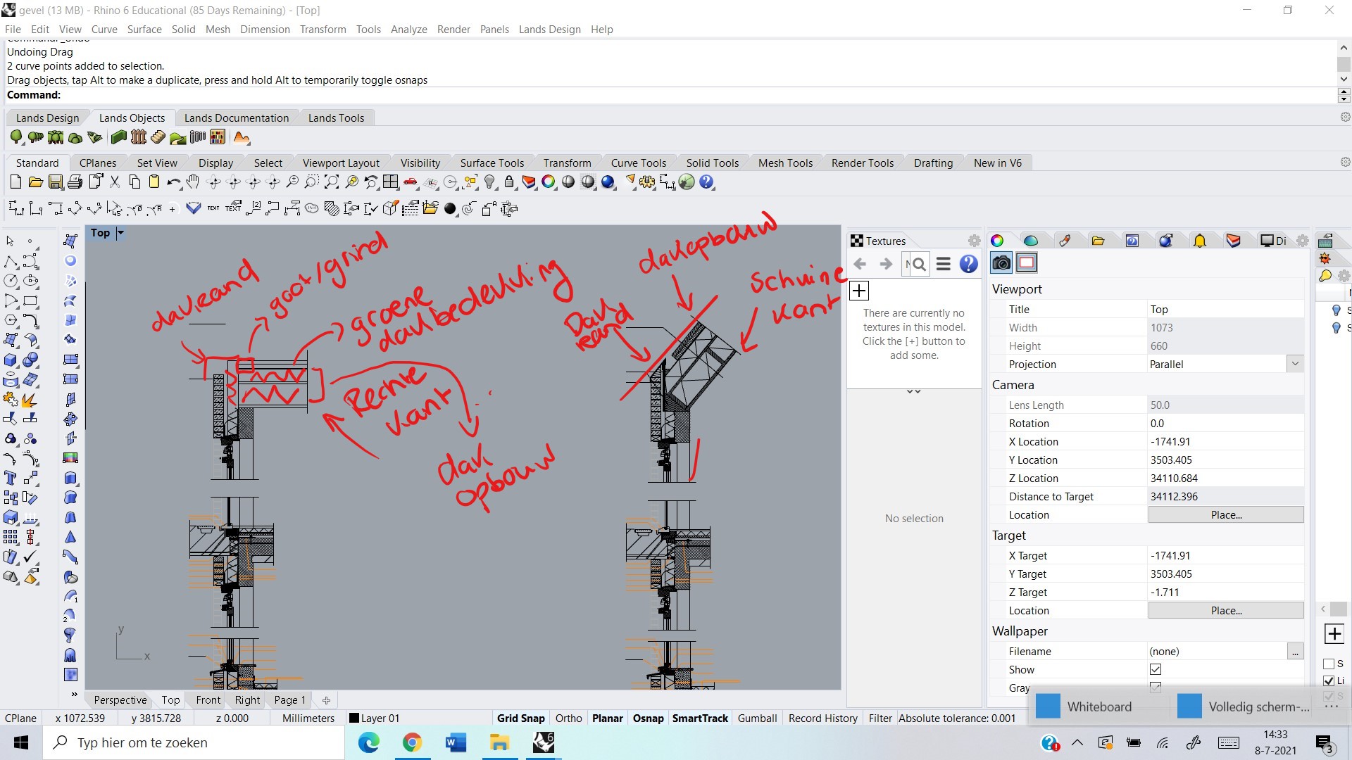 Ik studeer bouwkunde in Delft en moet voor een opdracht een detail tekenen voor een schuinlopend dak maar op de kan waar als je hem ou doorsnijden het dak recht lijkt te lopen. Ik vroeg mij af of ik de dakrand dan ook zou moeten ophogen (Dus ongv. 120mm) ruimte tussen de top van de dakrand en mijn dakbedekking of dat ik deze zoals in de schuine doorsnede kan laten gelijk lopen met de top van mijn dakbedekking.