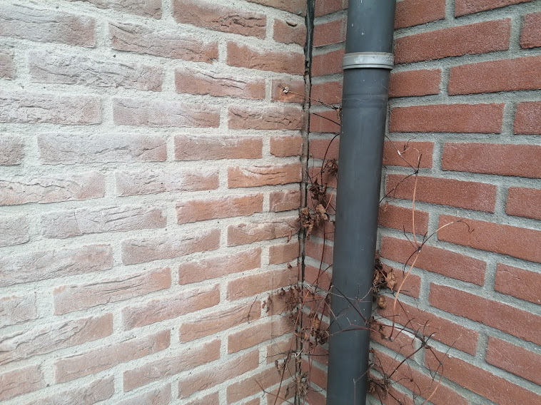 Voor u wellicht duidelijk, maar voor iemand die dit voor het eerst ziet totaal niet. Waar kijken we naar? Is links uw achtergevel en rechts de aanbouw van de buurman? Waar loopt de erfgrens? Waar komt deze afvoer vandaan? Is het de gezamenlijke afvoer van een doorgaande goot, of is het de afvoer van het platte dak.